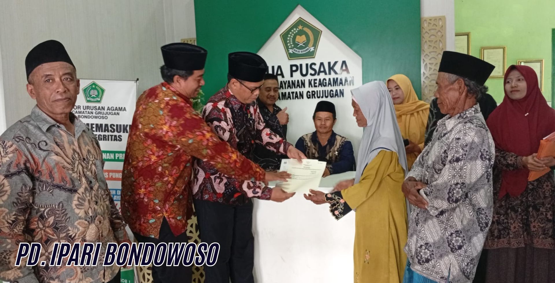 Prosesi ikrar wakaf berlangsung bersama Nadzir MWC NU Grujugan sebagai bagian dari upaya mendukung program “Bondowoso Sadar Wakaf”, sebuah gerakan yang mendorong masyarakat untuk meningkatkan partisipasi dalam amal jariyah produktif.